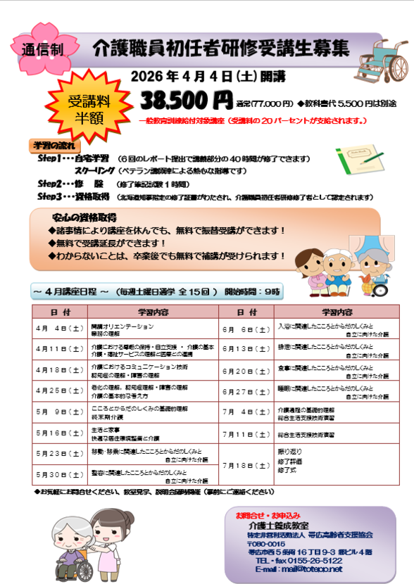 ●2026年介護福祉士実務者研修(通信課程)の詳細はこちらをご覧下さい。