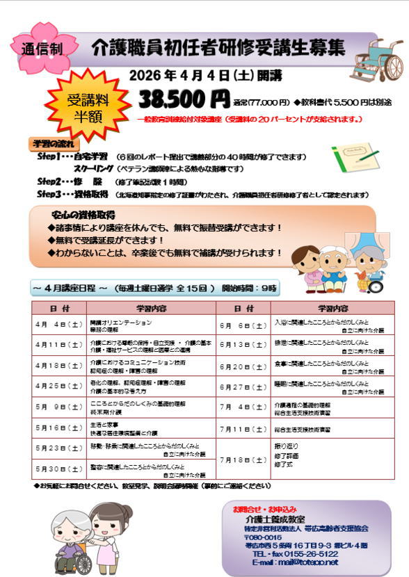 ●2026年介護福祉士実務者研修(通信課程)の詳細はこちらをご覧下さい。